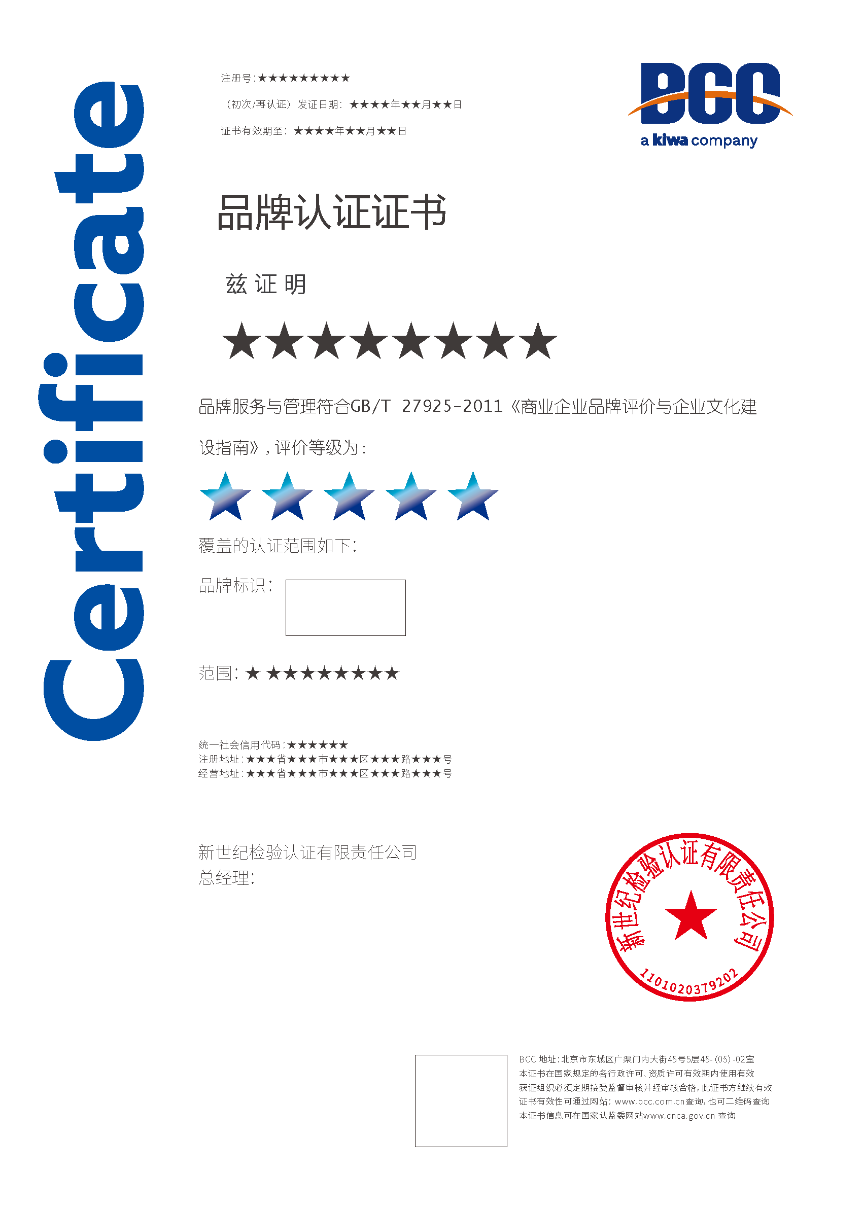 本頁(yè)涉及的認(rèn)證服務(wù)中均有對(duì)應(yīng)的《認(rèn)證實(shí)施規(guī)則》,BCC擁有其最終解釋權(quán)。任何組織及個(gè)人未經(jīng)BCC許可,不得以任何形式全部或部分使用(法律要求除外)認(rèn)證相關(guān)信息。如需獲取相關(guān)實(shí)施規(guī)則請(qǐng)用以下方式聯(lián)系獲取:電話:010-58579316 郵箱:fwjs@kiwa.cn